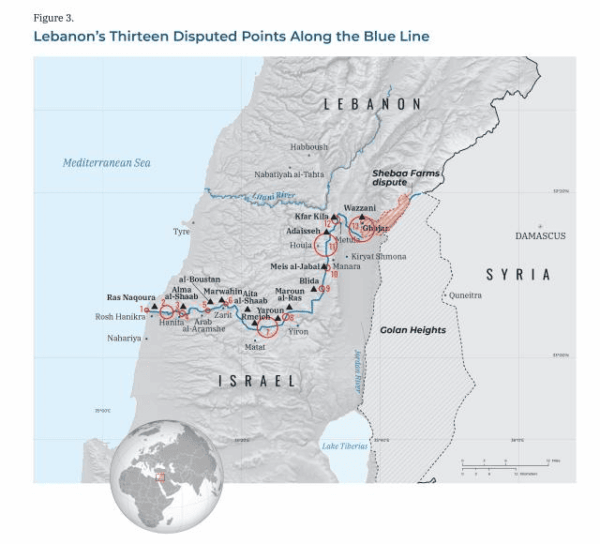 - Completion of a land border demarcation, for which most points are quite simple to resolve, including B1, separating Ras Naqoura (Lebanon) and Rosh Hanikra (Israel),where the United States has already proposed a compromise formula (see figure 3).