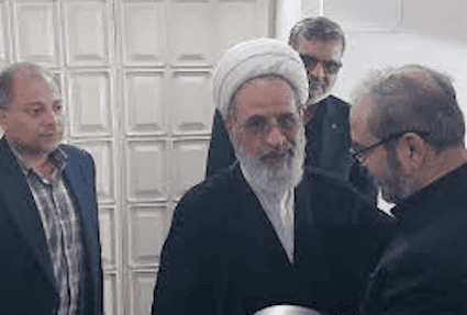(الصورة: علي أعرافي يعزّي ممثل حزب الله في إيران، عبدالله صفي الدين)