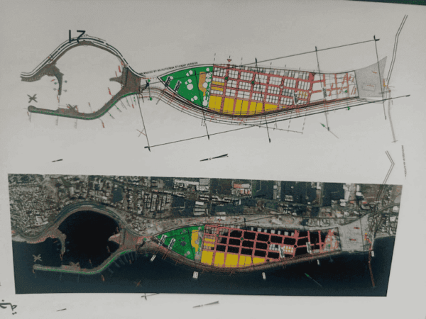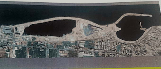 وبعد بناء الحاجز البحري، صار هناك حوض بحري تحيط به مساحات من اراض مردومة.