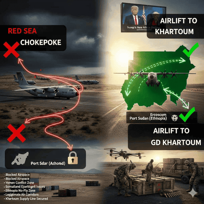 المحور الشرقي (الانتفاضة الصومالية): شكّل قرار مقديشو بإنهاء الوجود العسكري الإماراتي في “بوصاصو” وحظر طيرانها العسكري “سكتة لوجستية” للخطة البديلة. فقد كانت الصومال تُمثل الرئة التي يتنفس منها المشروع الإماراتي للالتفاف على حظر الشمال عبر الأجواء الإثيوبية، وبفقدان هذا المرتكز، باتت تكلفة الإمداد تضاعف المخاطر السياسية والمالية.
