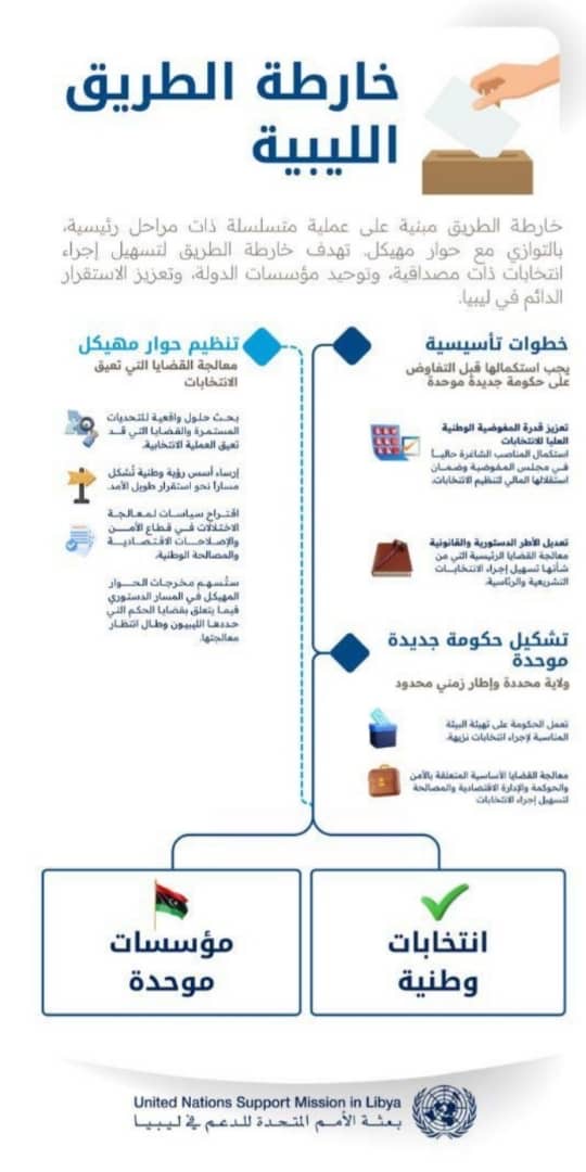 إن خارطة الطريق التي وضعتها بعثة الأمم المتحدة للدعم في ليبيا (UNSMIL) مليئة بالعديد من التحديات والعثرات، لا سيما في الجوانب التنفيذية، والتي قد تهدد نجاحها.