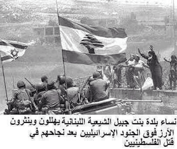 وإذا كانت « القوات اللبنانية » بقيادة بشير الجميّل تحالفت مع إسرائيل بقيادة « أرييل شارون » لطرد منظمة التحرير الفلسطينية من لبنان، إلا أن النصف الثاني للسردية، هو استقبال الشعب اللبناني في جنوب لبنان لجنود إسرائيل إستقبال « المُحرِّرين » كما تُظهِرُ الصور المرفقة هنا.