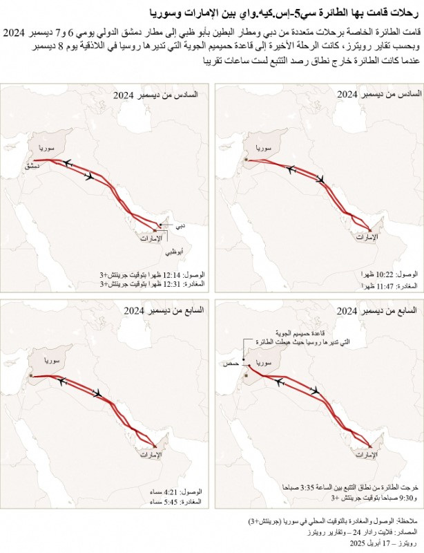 وظل مكان الأسد خلال الأيام الأخيرة المضطربة لنظامه سرا حتى عن أقرب أفراد عائلته. وحصل الأسد على لجوء سياسي لاحقا في روسيا. ولم تتمكن رويترز من الوصول إليه أو إلى إبراهيم للحصول على تعليق. ولم ترد وزارتا الخارجية الروسية والإماراتية على أسئلة حول العملية.