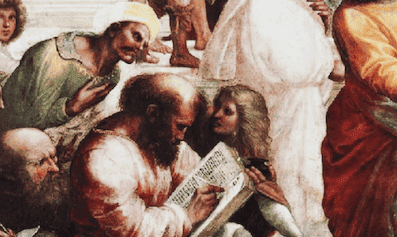 (الصورة: لوحة “مدرسة أثينا” للإيطالي “رافاييل”: الفيلسوف العربي “إبن رشد” يضع يده على صدره ويحني رأسه ليقرأ ما يخطّه “أرسطو”)…