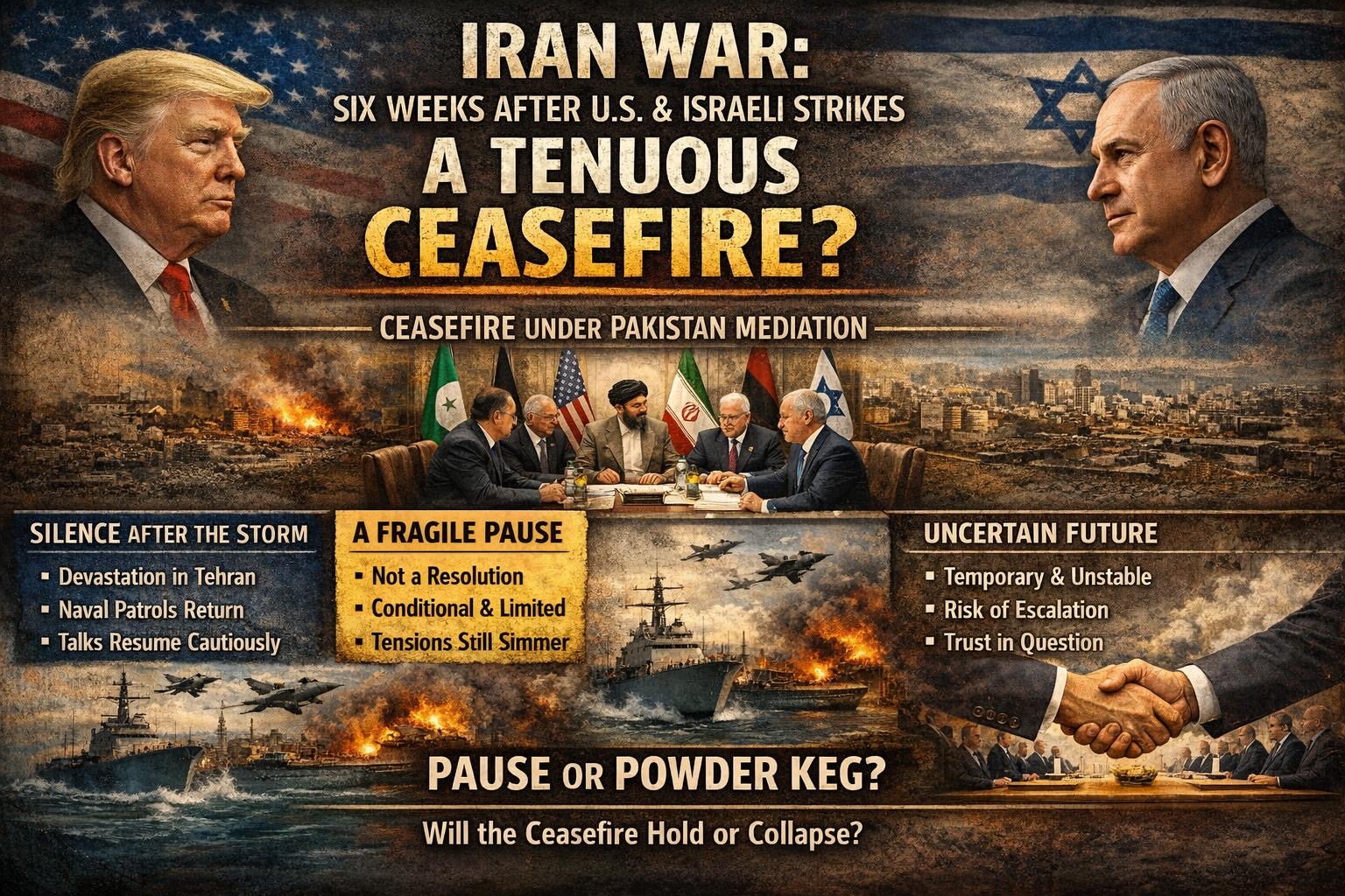 Six weeks after the United States under Donald Trump and Israel led by Benjamin Netanyahu launched coordinated strikes on Iran, a Pakistan-mediated ceasefire that took effect on April 7 has imposed a temporary halt on hostilities. The guns have, for now, fallen silent, maritime traffic has resumed under controlled conditions, and diplomatic channels have reopened. On the surface, this suggests de-escalation. In substance, however, it is something more fragile and far less conclusive. The war has paused. The question is whether it has paused honestly.